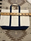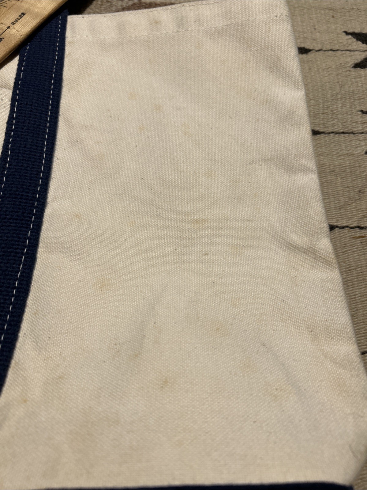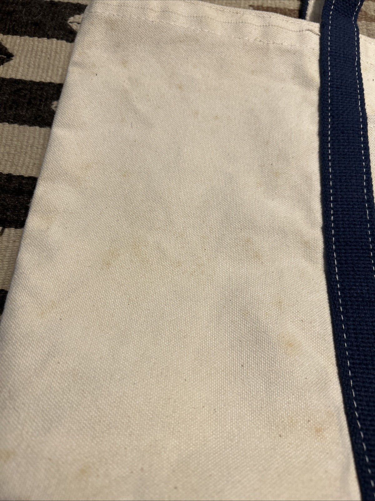 LL bean pattern tote bag. Blue white Roughly about 19.5” Some minor signs of use distressed, see photos. Stain inside. Looks like it can be mostly washed out. Next day shipping. Offers are on.