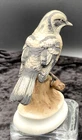 Delight in the charm of this vintage Lefton porcelain figurine, a hand-painted Warbler that brings a touch of nature's song to your collection. Crafted with meticulous attention to detail, this piece, marked KW 4206, comes with its original foil seal, testament to its authenticity and handcrafted quality. Measuring 4.2 inches in length, 5.2 inches in height, and 2.3 inches in width, this exquisite figurine weighs a comfortable 6.4 ounces. Originating from Japan, it is a splendid representation of porcelain artistry, perfect for bird enthusiasts and collectors alike who appreciate the beauty of handmade items. The mark and foil seal indicate this piece was created between 1949-1952. The figurine is in excellent condition. There are no chips, cracks or signs of wear.