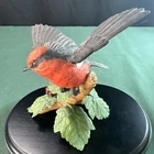 This vintage Lenox porcelain figurine features a beautiful Vermilion Flycatcher, hand-painted with intricate details. The 5" x 5.25" x 4.25" figurine is a part of the Garden Birds collection, manufactured in Taiwan in 1993. Its traditional style and matte finish make it a perfect addition to any room, suitable for all occasions. The collectible item is an original and has not been customized. It is a perfect gift for adults who love birds and vintage decorations. The all-over pattern and multicolor design make it a unique piece. This unit quantity figurine is a great addition to any collection.