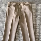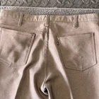 These vintage Levi's 517 pants are crafted in brown perm press polyester with a bootcut leg style, offering a classic and comfortable fit for men in size 38x32. The pants feature a zipper and button closure, flat front, slash pockets, and a knit fabric type, making them suitable for casual, formal, or business occasions. With a high rise and regular fit, these pants are both breathable and machine washable, ideal for wearing in winter, summer, fall, or spring. Made in the USA, this timeless piece embodies the style of the 60s, 70s, 80s, and 90s.