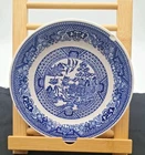 This product is a vintage set of 4 Blue Willow patterned dinner plates and saucers, inspired by Chinese design. Made of porcelain, the round plates feature a classic blue and white color scheme, perfect for all occasions. The set is from the mid 20th century and is part of the Blue Willow brand product line, adding a decorative touch to any collection with its Chinese cultural influence.