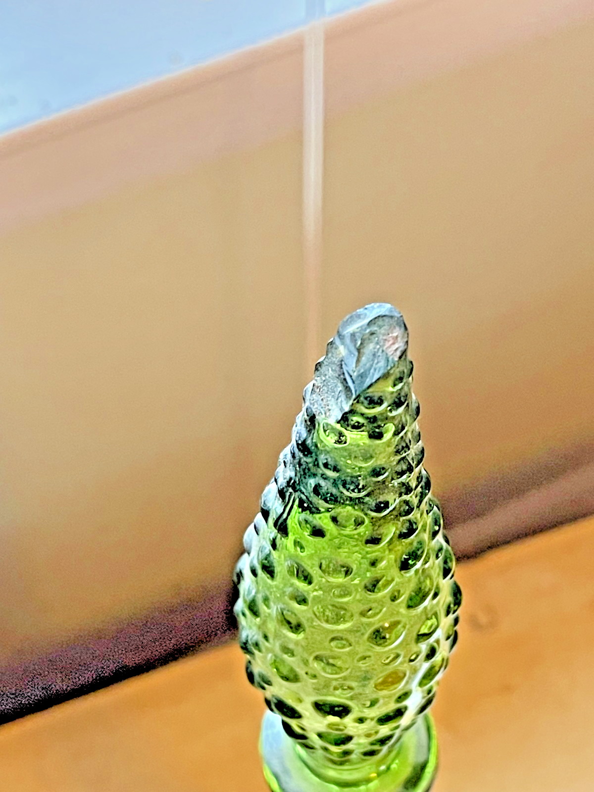 Discover a magnificent piece of mid-century Italian design with this vintage Empoli genie bottle decanter. Standing an impressive 22.5 inches tall, this captivating green glass decanter features a distinctive hobnail diamond point pattern that catches the light beautifully, adding a touch of vibrant retro charm to any space. The elongated neck and classic genie bottle silhouette evoke the iconic style of Italian art glass from the mid-20th century. Crafted in Italy, this Empoli decanter showcases the quality and unique aesthetic that collectors and enthusiasts cherish. The rich green hue is a hallmark of many Empoli pieces, making this a striking focal point for your bar cart, display cabinet, or as a standalone decorative statement. Though pre-owned, its enduring design remains as stylish today as it was decades ago. Perfect for adding a pop of color and vintage flair to your home decor, this Empoli hobnail genie bottle decanter is a true conversation starter. Whether you're a seasoned collector of Italian glass or simply appreciate unique and beautiful vintage items, this tall green decanter will be a cherished addition to your collection. Stopper chipped