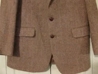 Vtg. Men's Herringbone Harris Wool Tweed Sport Jacket Made in USA Handwoven Scottish Wool. Leather covered buttons. Measurements: Chest - armpit to armpit 20 in. Mid-19 in. Shoulder - 17 in. Length - 32 in. Sleeve - 24 in. Check measurements carefully. No size tag. Probably a size 38.