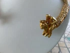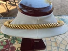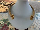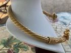The product is a vintage necklace from the Metropolitan Museum of Art, specifically the 1977 Scythian Horsemen Torque GP Necklace. This choker style necklace features a yellow gold plated metal design without any main stone. The sleek and classic design of this piece makes it a timeless accessory for any jewelry lover.