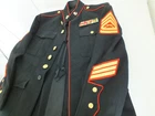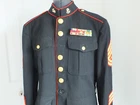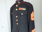 Vintage Military USMC Marine wool gabardine dress blues set w/pins patches JACKET/ coat, PANTS/ slacks. Chest size 40" Sleeve length 24" jacket length 30" Neck 15 1/2" Pants 36" x 29" Information given to me by an eBay buyer: "The uniform is dated 1971 as well which is further backed up by the way he wears the ribbons - for example, he is wearing a combat action ribbon which was not worn until 1969. Also mentioned that he was probably in Vietnam" clstHngr