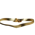 Vtg Mimi Di N Gold Cat Double Buckle Novelty Belt 1993 Stamp Cat Lover Unique 33" strap length adjustable, no notable flaws. Tags: Vintage, Cat Lover, 90s, Eclectic, Funky, Bold