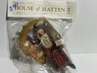 You are bidding on a Vintage New Old Stock House of Hatten Christmas Ornament Santa on Crescent Moon Denise Calla Designed 1989. Ornament still sealed in Bag No return for this item Thanks for looking and good luck