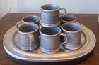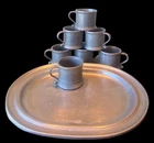 This vintage pewter Country Ware tray and cup holder is a charming addition to any collection. Each piece is made from high-quality pewter and has a beautiful design that's sure to catch the eye.