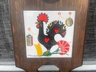 VtG Wooden serving tray cutting board by Pfaltzgraff with inserted Ceramic Rooster Trivet. Made in the USA. new in unused condition. for our inventory shelf 1 Alaska bookcase