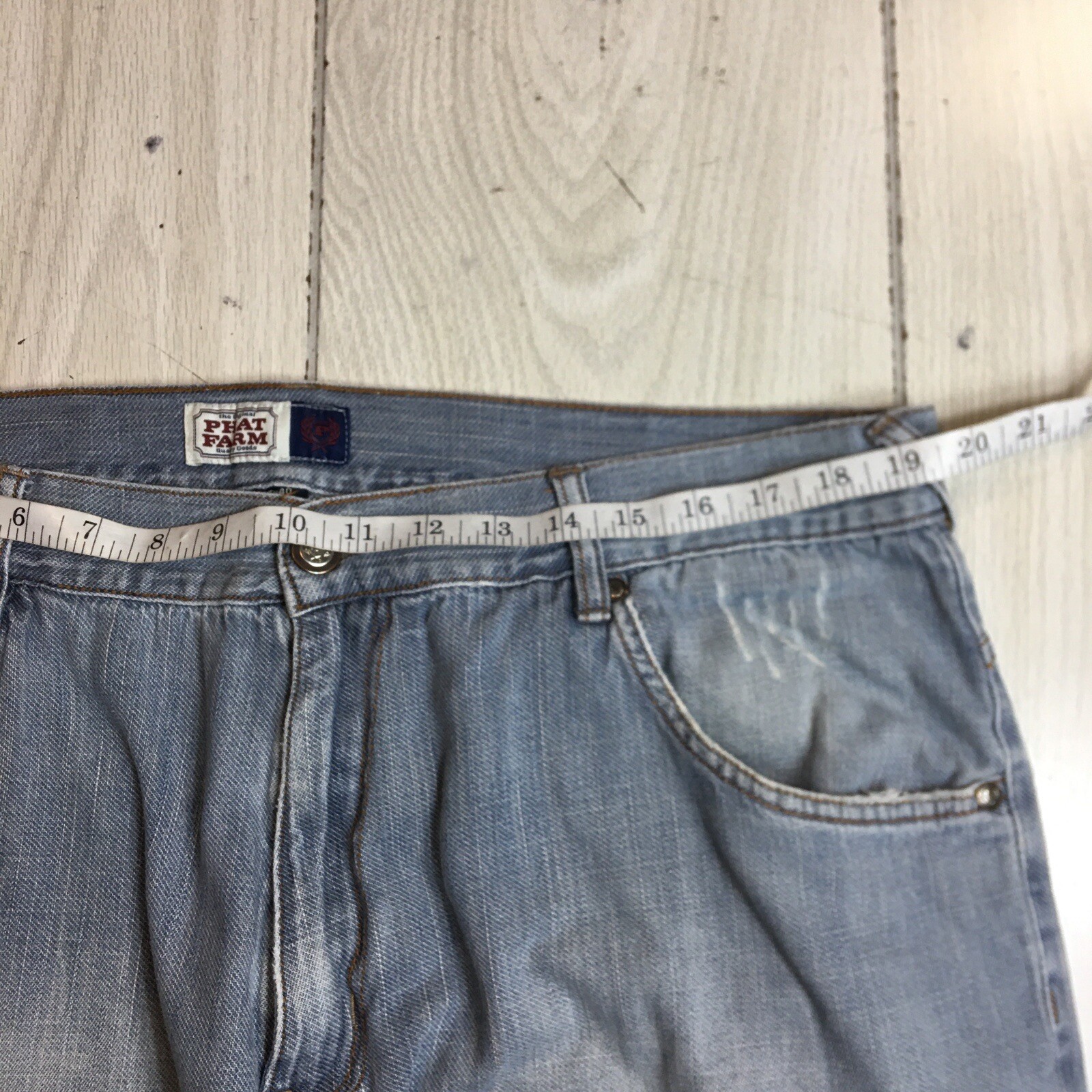 Vtg Phat Farm Jeans Mens 40x32 Baggy Wide Leg Hip Hop Y2K Light Wash 76-#1276