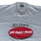 Vintage Phi Kappa Theta Rush T-Shirt Gray XL Graphic Print Fraternity Tee ‘Best Fruit of the Loom’ XL Men's T-Shirt in gray with a graphic print. Made in the USA from a comfortable and durable cotton-polyester blend. Features a vintage Phi Kappa Theta design, ideal for Greek life or fraternity events. Laid flat measurements: chest 23.5” length 28” Keywords: Fruit of the Loom, XL, Men's T-Shirt, Gray, Graphic Print, Phi Kappa Theta, Greek Life, Fraternity, Vintage, Comfortable, Durable, Cotton, Polyester, Pre-owned, USA