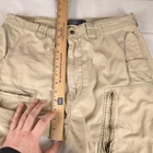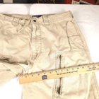 Has some heel drag shown in photos 9 and 10. Tagged size 34x32 see photos for measurements to determine proper fit before buying. Thanks.
