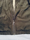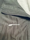 Vintage Black with white pin stripe Embroidered logo on front right chest Full Zippered Two pockets Elastic sleeve and waistband Jersey lined Previously Owned Good usable condition See photos for measurements and condition