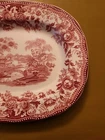 This vintage Royal Staffordshire Clarice Cliff Tonquin platter is an oval-shaped ceramic plate with a red/cranberry transfer design. Condition: Used Very Good Condition - No Chips or Cracks Color: Red It measures 11.5 inches in length and 9.5 inches in width, featuring a glossy finish and a printed backstamp. Handmade in England, this small platter from the Tonquin product line by Royal Staffordshire is a classic and elegant piece suitable for all occasions. It is recommended to hand wash only to preserve its original vintage charm. Buy Today from a seasoned Ebayer who ships fast Buy Now!!