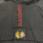 Vtg Starter Chicago Blackhawks 1/2 zip Puffer Jacket embroidered Blackhawks down zipper and logo big logo on back Size: Large Length: 29 in. Pit to Pit: 24 in. Flaws: none