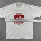 This vintage Screen Stars Best L White Single Stitch Shirt is a USA-made t-shirt featuring a Santa Fe, New Mexico theme with a focus on pancakes. Made with a white knit fabric, this shirt has a classic crew neck and short sleeves, making it suitable for all seasons. With a nostalgic touch and easy-care features, this shirt is perfect for men who appreciate a combination of comfort and style in their wardrobe choices. No holes or stains See pictures for pictured measurements compare with your favorite garment and ask questions if you have any Add to your collection today Browse my other items I can combine shipping