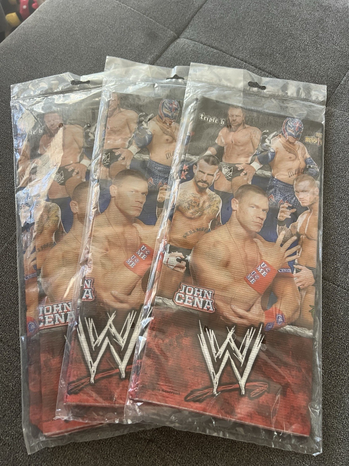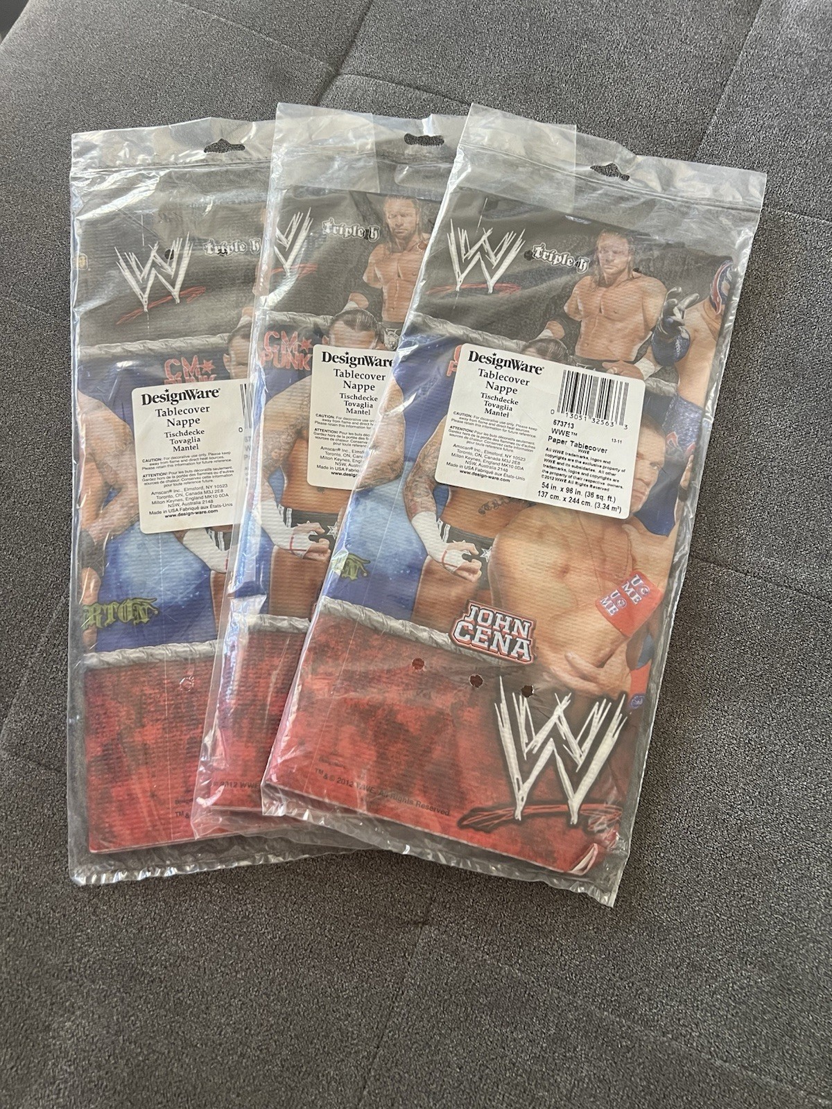 Napkins- 16 2 ply Cups- 8 , 9oz Bags-24 Blowouts- 8 3 table cloths 54”x96” All new never opened- sealed