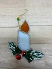 Vtg Stained Glass Holly Berry Candle Christmas Ornament.Very good condition,no cracks,no chips. WE OFFER COMBINED SHIPPING AND MULTI-ITEM PURCHASE DISCOUNTS.IF YOU HAVE ANY QUESTIONS PLEASE LET US KNOW