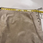 Crafted for the free-spirited fashionista, this vintage Gypsy suede leather skirt embodies bohemian elegance. A perfect blend of comfort and chic, the skirt features an asymmetric design, adding a unique touch to the timeless maxi silhouette. With its neutral beige hue, it serves as a versatile foundation for a multitude of looks, whether you're dressing up for a festival or curating a casual ensemble. The skirt is a size Large, catering to the regular size type, and falls gracefully to a midi length, offering a sophisticated drape that flatters the figure. Made from premium leather, it's a staple piece that seamlessly combines style with durability. The intricate lace detailing adds a delicate contrast to the rugged texture of the leather, making it a standout addition to any woman's wardrobe. Tags: hippie western cowgirl coquette gypsy Please see ALL the pictures for conditions Flaws : Very small stains that barely noticeable, pls see the last 2 pictures.