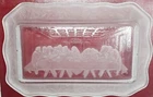 Vtg Tiara Indiana Glass Bread Plate Tray The Last Supper Clear & Frosted 11"x 7" Nice stunning frosted edge and center glass serving tray. No damage, no cracks or chips. Please review pictures before purchasing to better understand the condition of the item. This vintage Tiara Indiana Glass bread plate tray features The Last Supper in clear and frosted glass. Measuring 11" in length and 7" in width, this hand-blown plate is perfect for serving bread or as a decorative piece. The frosted glass gives it an elegant touch while the religious theme adds a sentimental value to it. Crafted by Tiara, a well-known and trusted manufacturer in the glass industry, this plate is made of high-quality glass material and is perfect for collectors or those who appreciate vintage items. Its white color and unique features make it a great addition to any decorative collection.