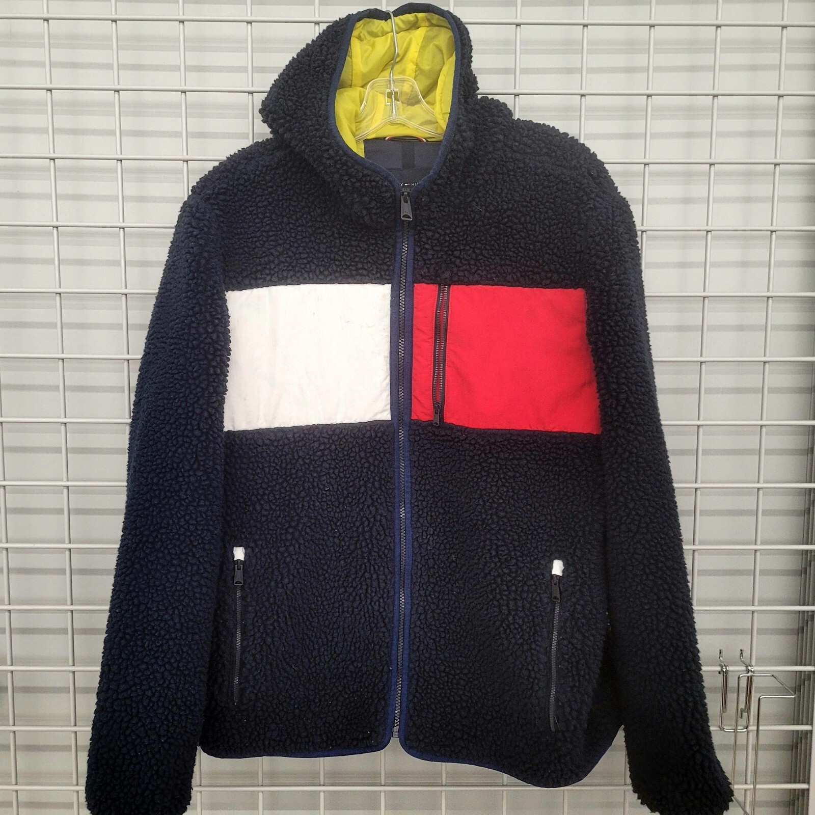 This vintage Tommy Hilfiger jacket is perfect for any occasion. The mid-length parka style jacket features a color block pattern with a deep pile fleece made of polyester fabric. The jacket has a zip closure, and it comes in L size suitable for men. It has a lined interior made of acrylic and features accents like a logo, zipper, and patches. The jacket is machine washable, perfect for winter, fall, and spring season. This jacket is ideal for travel, party/cocktail, casual, formal, and business, and its performance/activity includes walking, cycling, cross-training, CrossFit, running & jogging. Get your hands on this jacket made in China with a Wu Tang vibe