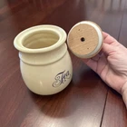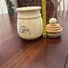 Vtg Towle National Housewares Tea Canister Wooden Top Ivory Farmhouse Cottagecore This vintage ceramic tea canister from Towle's National Housewares collection is the perfect addition to any farmhouse-style kitchen. The ivory and brown script color and wooden lid with a pale green knob give it a rustic, charming look that's sure to catch the eye of collectors and guests alike. Measuring 5 inches in height and 3 inches in width, it's the ideal size for storing your favorite tea blends or other kitchen essentials. The canister is a single item in the set and comes with a lid. Its style is farmhouse vintage, with a country theme that's perfect for collectors and enthusiasts of all kinds. Whether you're looking to add to your collection or just want a unique piece to display in your kitchen, this Towle tea canister is sure to impress. Pale Pastel Green Knob