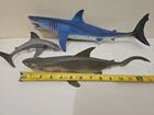 LOT includes all 3 hard to find Shark toys. All 3 are in very good condition. The Jaws Shark squeaker works great. All 3 vary in size. Ranging from the smallest 7' & up to 17' in for the largest. Please see pictures for reference for condition and measurements