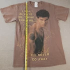 Embrace your love for the Twilight saga with this vintage Gildan Heavy Cotton T-shirt, featuring a classic graphic from the popular series. Crafted from soft, preshrunk cotton, this unisex brown tee showcases Jacob's iconic "I Will Always Be There For You" quote, making it a must-have for fans and a unique addition to any movie-themed collection. The T-shirt comes in a small, regular fit with a comfortable crew neckline and short sleeves, suitable for all seasons. Whether you're heading to a Twilight convention or just out for a casual day, this machine-washable shirt pairs effortlessly with your favorite jeans or shorts, ensuring you can showcase your fandom style effortlessly. ***PLEASE NOTE, there is a small hole in the back of the shirt. Can be seen in last couple pics.***