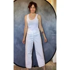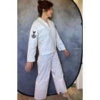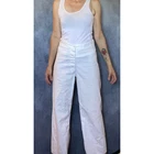 Vintage Men WWII 1960's white Sailor Pants/Top Uniform, belonged to my dad who was in the Navy. I have 3 Pant/Top SETS of these available, so if you'd like more let me know. Below are the measurements for all 3 i have, they are very similar. You can tell me which measurements you want if you just buy one set. WIDE LEG PANTS- (shown on woman who is 27" waist) Waist: 29" and one is 30" Rise: 12.5" and one is 13" Inseam- 30" or 29" or 27" TOPS - Length: 24" and one is 23" Shoulder to shoulder: 18" and one is 17" Pit to pit: 20" on all Waist flat: 19" and one is 18.5" Great! Minimal imperfections. One of the pair of pants have a black spot, like marker, smaller than a dime. Side patch. Name printed.