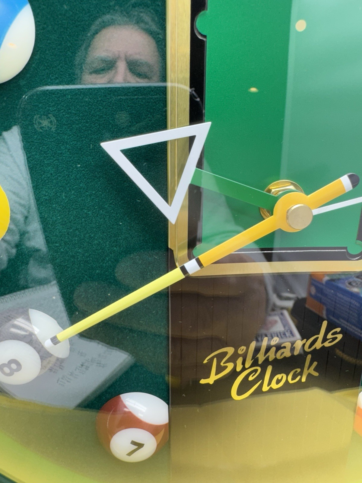 The product is a vintage wall clock from the 1980s or 90s featuring a design inspired by billiards and pool tables, with a theme of pool balls and a bar or man cave aesthetic. Made by Panclox Quartz, the clock is of Japanese origin and was manufactured by Shinfuku. This unique and nostalgic piece would be a stylish addition to any indoor game or pool-themed room, adding a retro touch to the decor.