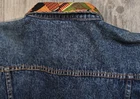 This Whittall & Shon Embellished Beaded Fringe Denim Jean Jacket in blue is a stylish and versatile addition to any woman's wardrobe. Made from 100% cotton denim, this jacket features a geometric bead accents and a vintage Western-inspired design. The collared neckline, long sleeves, and button closure make it perfect for a variety of occasions, from casual outings to parties or even business meetings. With its XL size and regular fit, this short-length jacket is suitable for all seasons and can be hand washed for easy care. Ideal for those who appreciate a blend of classic and modern styles with a touch of hippie flair.