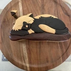 This vintage wooden puzzle features a cute cat design and a secret compartment for storing small items. The puzzle is made of high-quality wood and has been well-maintained. It is a great addition to any collection of trinket boxes or cat-themed items. The puzzle's country/region of manufacture is unknown, adding to its mystery and charm.