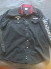 This is a vintage Wrangler long sleeve T-shirt in size XL featuring a graphic of Jack Daniels Old No 7 whiskey. The design has a cowboy, rodeo, grunge, and biker theme, with elements of retro, western, and punk styles. The shirt is black in color and made in the United States. The character Stitch from Bleach is depicted on the shirt, giving it a unique and edgy look popular in the 90s.