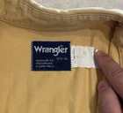 This vintage Wrangler Shacket is a must-have for any cowboy or Western enthusiast. Made with high-quality cotton canvas fabric, this shirt features a collared neckline, long sleeves, and a regular fit. The brown color and solid pattern add a touch of style to any outfit, and the pearl snap buttons and pockets make it both functional and fashionable. Perfect for both casual and workwear occasions, this shirt is easy to care for and suitable for all seasons. The Wrangler Western product line ensures authenticity and quality, and the shirt is machine washable. Don't miss out on this unique piece of Western history, ideal for anyone who wants to add a touch of rodeo and cowboy theme to their wardrobe. This shirt is in good preowned condition with little sign of wear, please see ALL photos for a better idea on condition, any measurements, or details to the shirt.