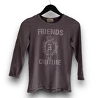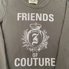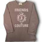 100% cotton | USA made 🇺🇸 Early 2000s y2k USA made vintage juicy couture super soft t-shirt brown top graphic spell out on front “FRIENDS OF COUTURE” & iconic crown emblem in gorgeous shade of pink featuring 3/4 sleeves in size medium. Excellent vintage pre owned condition. Laid flat measurements: chest 16.5” length 22.5” sleeves 18”