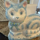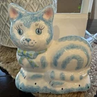 Vtg ceramic cat napkin holder Puuurfect Cat Lover Home Sponged Blue Ceramics