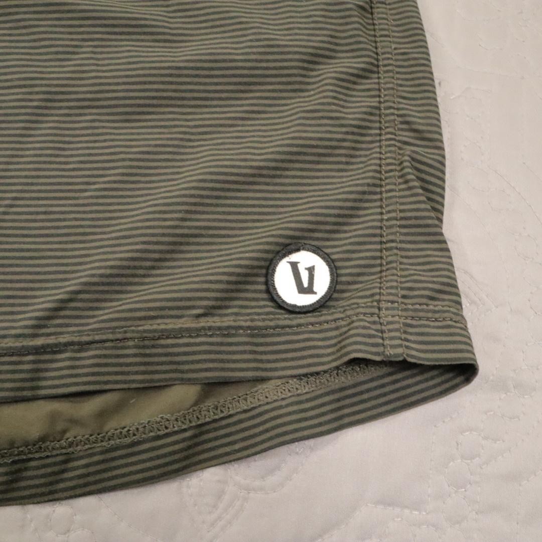 Features: Drawstring, Elastic Waist, Lined, Pockets Occasion: Activewear Department: Men Style: Athletic Fit: Regular Vintage: No Country of Origin: China Size Type: Regular Brand: Vuori Inseam: 7.5 in Performance/Activity: Gym & Training, Running & Jogging Color: Green Material: Polyester, Spandex Season: Spring, Summer, Fall Closure: Drawstring Pattern: Striped Size: L Waist Size: 34 in