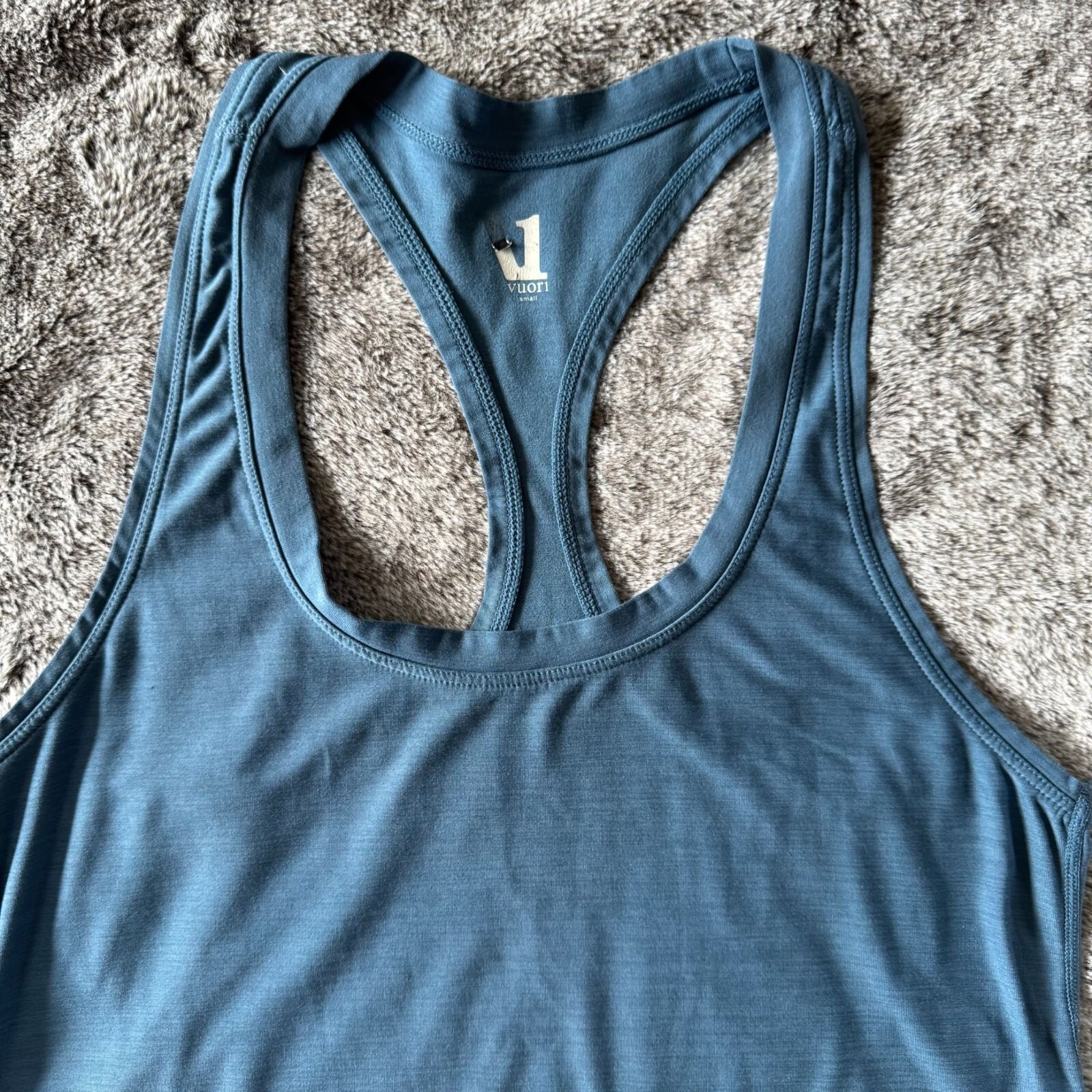 Vuori Lux Performance Tank Gently worn, no known stains or flaws Size - Small Color - Teal/blue Retail - $49 Material - 88% polyester, 12% elastane When activewear meets luxury, you get a light and silky top featuring a halter neckline, a racerback and a breathable but flattering hug throughout the body. The Lux Performance Tank has all the performance properties including moisture wicking, needed for a workout top.