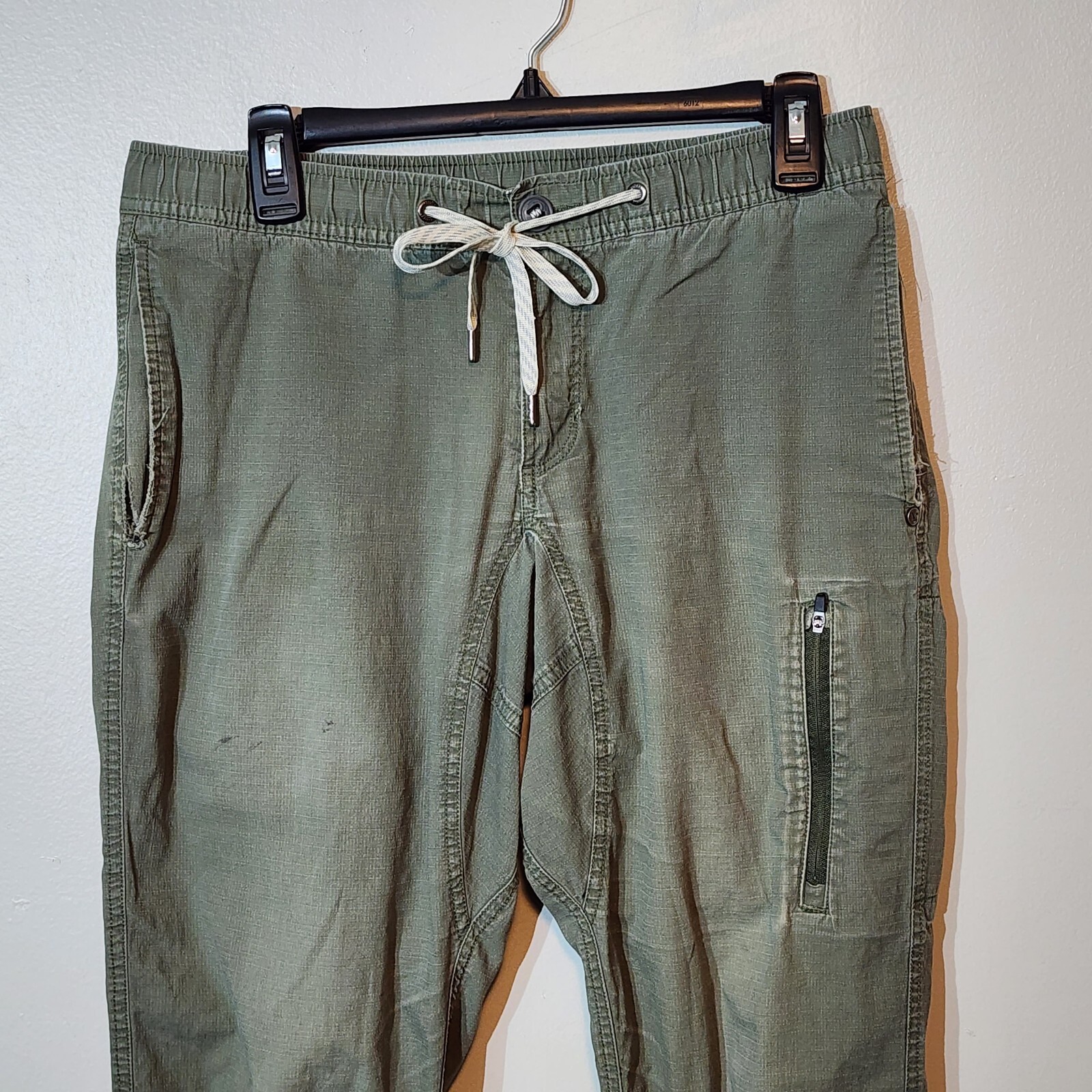 Vuori Jogger Pant Size Medium Green The Rise The Shine Ripstop Tapered (Read) This item is pre-owned with signs of wear. Pictures 2 and 3 holes at the pockets.