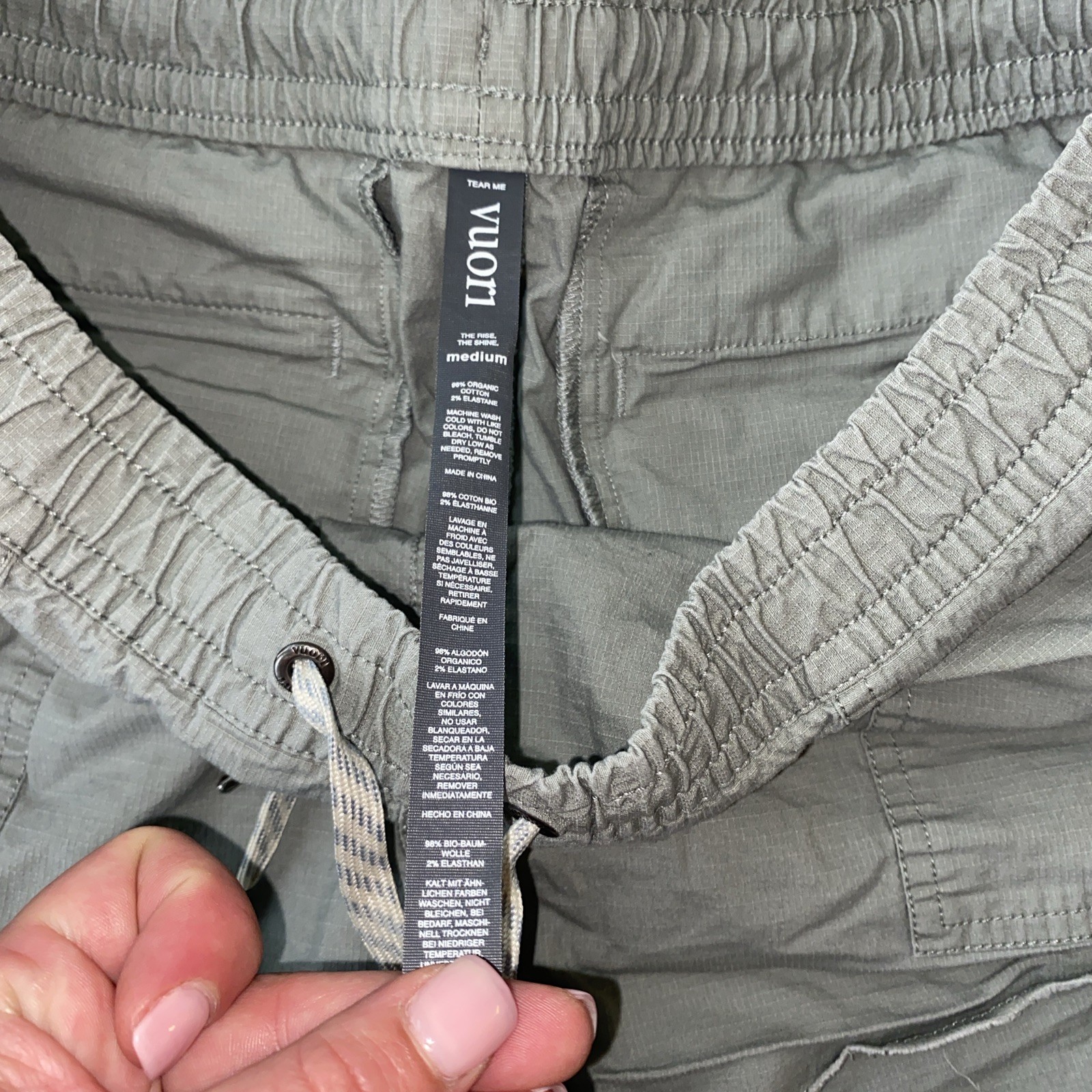 The Vuori Women's M Gray Vintage Ripstop Shorts are versatile outdoor shorts perfect for travel, casual wear, or activewear. With a drawstring closure and stretch material, they provide a comfortable fit for various activities such as hiking, running, or walking. The 3-inch inseam and solid gray color make them a stylish and practical choice for all seasons. The lightweight fabric and breathable design ensure ease of movement and comfort during outdoor adventures. Made by Vuori, these shorts combine quality construction with functional features for the modern woman on the go.