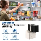 W10613606 Refrigerator Compressor Start Relay, Fit for Whirlpool, Kenmore, KitchenAid, Amana, Maytag, Fridge Compressor Relay Replaces W10416065, PS8746522, 67003186, AP5787784, PS8746522, 3023300 Description Features: Enhanced PerformanceCrafted with premium materials. W10613606 fridge compressor relay effectively kick-starts your refrigerator's compressor, ensuring efficient cooling and temperature control. Fit Most BrandsW10613606 refrigerator compressor start relay compatible with Whirlpool, Kenmore, Admiral, Amana, KitchenAid, Caloric, Crosley, Inglis, Magic Chef, Modern Maid,etc. Replaces Part NumbersW10613606, 8171210, 67003186, 67005561, W10416065, 8208290, 67003764, 67005562, W10613606VP, 8208368, 67005560, C8931605, 3023300, AP5787784, PS8746522, EAP8746522 Solve Problems1.Will not start. 2.Freezer section too warm. 3.Fridge and Freezer are too warm. Easy InstallationInstalling the W10613606 refrigerator compressor relay is a breeze. You can enjoy a revitalized refrigerator in no time! Product Details: Manufacturer: Freeboy Part Number: W10613606 Item Weight: 3.52 ounces Product Dimensions: 3.1 x 2.5 x 2.3 inches Country of Origin: China Item model number: W10613606 Size: 1 Pack Material: Plastic Item Package Quantity: 1 Included Components: W10613606 Batteries Included?: No Batteries Required?: No Warranty Description: 2 year Date First Available: November 14, 2023 Handling We will ship all orders within 3 business day of payment. Delivery We Do Not Ship Outside of the Continental US. Return Policy All items qualify for returns within 30 days of receipt. Buyer is responsible for return shipping on any item that is not damaged. Feedback We take our reputation seriously, we buy and sell online, so we understand the value of trust. If you are unsatisfied with your order, please contact us and we will work with you to resolve it to your satisfaction.