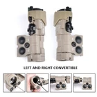 Name:Nylon MAWL-C1 Laser+Tactical Augmented Dual Pressure Switch(Double 2.5mm Plug) COLOUR1:BK/DE Material :NYLON PLASTIC FIT:20MM picatinny Rail ENDURANCE:40min Battery: 16340 rechargeable battery ( not included ) FUNCTION: LASER LONG BRIGHT, WHITE LONG BRIGHT,WHITE FLASH, IR LONG BRIGHT, IR LONG BRIGHT, LASER + WHITE LONG BRIGHT,LASER + WHITE FLASH, IR LONG BRIGHT,IR Illumination