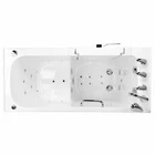 Crafted with the highest grade of acrylic that will maintain the tubs quality and resilience and last the lifetime. delivers quality engineering in style with Outward Swing Door Walk In Tubs. Each walk in tub is equipped with a beautifully crafted industrial plastic composite door with tempered glass giving you a tub with a unique high-end look. A low step-in threshold, textured slip resistant floor, molded seat as well as wall and/or deck mounted grab bars work in unison to allow for easy and safe entry and exit of the tub. Read More The acrylic shell is backed by a solid rustproof stainless-steel frame with adjustable leveling legs, giving you a safe, sturdy, and long-lasting walk-in bathtub. Ella Outward Swing Door Walk In Tubs are equipped with a unique gear and shaft driven 3-latch door that edges out our competition who typically use a single latch/lever system. A 3-latch door system provides a more secure and watertight door seal than the conventional single latch system, providing you with a leak-free bathing experience. Walk In Tubs range from standard dimensions with the DIAMOND and PLATIUM our space-saving Mobile and Front Entry, We also offer two seat walk in tubs such as the Tub4Two and Big4Two. Choose from various jetting options like soaking, therapeutic hydro and air massages, rejuvenating and softening Infusion™ Microbubble Therapy, or upgrade to the luxurious Big4Two walk-In bath with independently operated, strategically positioned powerful foot massage jets to soothe tired soles and calves. Faucet options include our standard anti-scald Thermostatic Control Valve for the safety-conscious consumers, or you can select one of the fast-fill faucets available in classic and contemporary styles. Ella packages offer features like radiant heated seat and back rest to keep you comfortably warm as the tub fills or empties, aromatherapy to help stimulate your senses using essential oils, LED chromatherapy to aid in mood enhancement through colorful alternating hues, and ozone sterilization for easy maintenance with chemical-free, earth and bio-friendly technology. Scroll down to learn more about our walk in bath packages and take a tour. One of the best and exclusive features of our walk-in tubs is its Dual Drain Technology (DDT) which consists of two (2) independently operated 2” gravity driven drains. Each drain is outfitted with its own overflow and stainless-steel cable operated drain opener with extended handle for an easier grip. Typical drainage time is approximately +/-80 seconds at ideal in-home plumbing conditions. Having two gravity driven 2” drains not only provides you with quick and reliable drainage, but also acts as a safety feature in case if one drain fails, allowing you to safely drain and exit the walk-in tub. The two-inch drains can be connected using Tee or Y 2” pipe connectors to the standard 1 ½” or 2” house drain. If possible, it is recommended to connect into 2” or 3” house drain for a faster drainage time. Ella gravity driven Dual Drain drains are fast and reliable because they do not require electric pump. Whereas electrical driven drains may fail due to electrical shorts or power outages. Our strategically designed jetting systems outshine our competitors by a longshot. Strategically positioned jetting ensures that you receive targeted and effective massaging where you need it the most. Ella’s offers a variety of sizes and jetting options to be able to fit your therapeutic needs. Below is a brief outline of our jetting systems. Please feel free to venture into the specific product pages for detailed jet counts and positioning based on the selected tub. The hydro massage system includes a hydro pump with an in-line water heater, ecofriendly ozone sterilization, hydro massage intensity dial control, strategically positioned hydro jet system for targeted and effective massaging, and an on/off push control. The air massage system includes an air pump with a 3-speed variable push control and strategically positioned air jet system for optimal therapeutic relief. A digital controller option is also available with dual massage (air and hydro) package however the on/off push controls are the most popular choice considering the ease of use. The air massage system also includes the auto-purge feature. This feature engages automatically 20 minutes after the pump has been turned off to purge water out of the air jet lines. The auto-purge will engage automatically and run for 120 seconds to ensure your system is clear and free of moisture and excess water helping to prevent the mildew build up. Ella Infusion™ MicroBubble Therapy consists of a single microbubble jet connected to a hydro pump and microbubble tank system. The high-pressure hydro pump along with the microbubble tank brakes down the water molecules into billions of tiny bubbles which are then sent out through the single jet, filling your walk-in tub with billions of tiny bubbles, providing you with an unequivocal moisturizing and exfoliating therapeutic experience. These bubbles moisturize and exfoliate your skin while you bathe. Push controls are standard on most packages as well as the most popular choice considering the ease of use. The push controls have a raised design for easy push on/off action. Ella outward swing U shape door consists of industrial grade durable plastic composite material and decorative tempered glass screen front cover. The unique gear and shaft 3 latch door lock mechanism allows for equal pressure to the door gasket throughout its entirety and guarantees a leakproof door seal. The best fast drain in industry – no power required! Ella gravity driven 2″ dual drain technology with independently operated 2 openers, 2 overflows for fast and reliable drainage and exit out of the walk-in tub. This drain can be connected to 4 x two inch outlets vs. one 1 1/2″ standard bathtub drain. See details in product page downloads or click here .