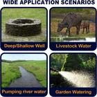 【ESSENTIAL PARAMETER】Stainless Steel Submersible Deep Well Pump rated voltage: 115V/60HZ;Rated power:1/2HP;Max flow:26GPM;Max head:138ft;Outlet:1-1/4" FNPT;For 4 inch well casings and bigger. 【HIGH QUALITY PUMP】Septic Submersible Pump Features:high quality stainless steel body;Built in capacitor start;Hermetically sealed motor is thermally protected to prevent overheating,for longer life and powerful start. 【APPLICABLE CONDITION】The water pump has no special requirement on well and water pipe, that means the pump can used in Steel pipe wells, ash pipe wells or soil wells, and if the pressure permit, steel pipe, hose or plastic pipe can be used as its water pipe. 【PREMIUM FILTRATION MESH】The filtration mesh of a submersible pump is made of stainless steel to filter impurities.You can add a layer of gauze in front of the filtration inlet for a new drilled well with excessive granular sediment. 【WIDE USE】4TMS series septic tank submersible pump is suitable for septic tank, fish pond, animal husbandry, water fountain extraction, agricultural irrigation and so on.