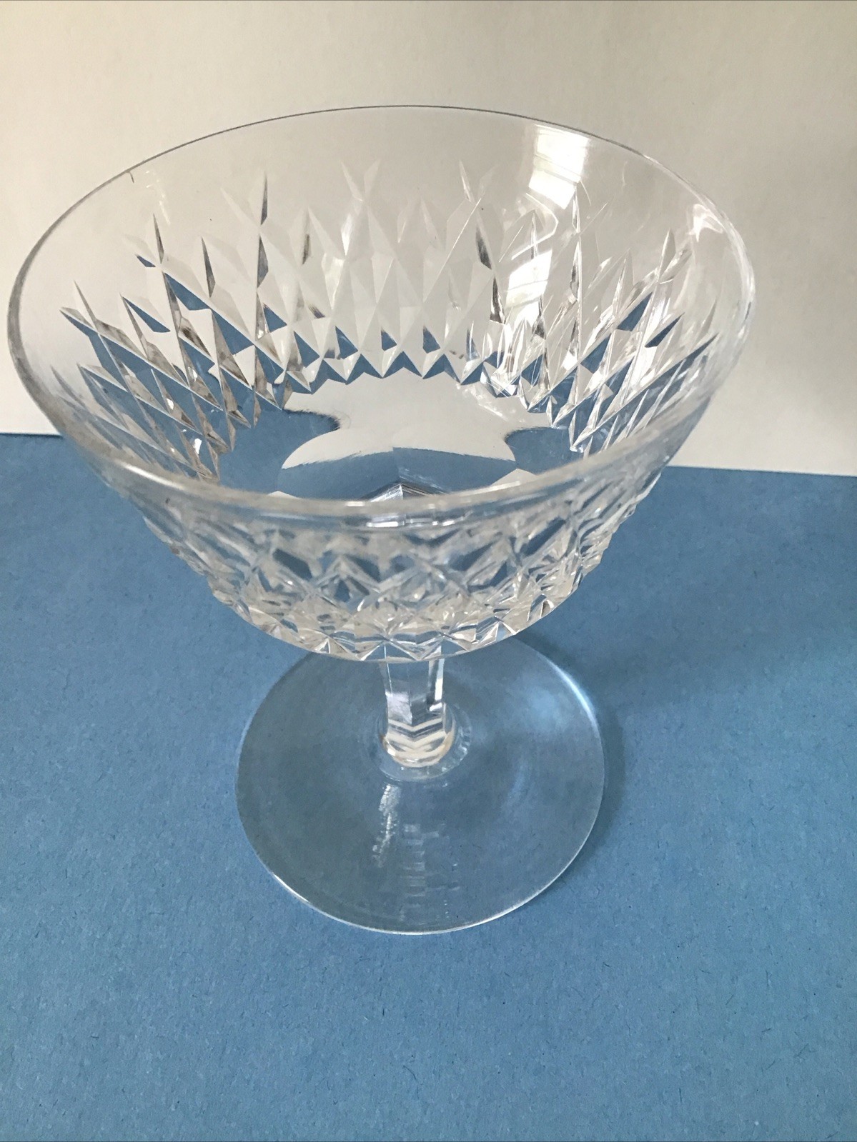 Sold separately 10 available Waterford Crystal Alana Champagne Coupe. This type of glass is often used for champagne or sherbet. One glass in excellent condition see your picture Waterford Crystal Alana glasses are known for their cross-hatch pattern and multi-sided stem. This pattern was first introduced in 1952 and is still in production. The Alana pattern is characterized by cut cross-hatch design with multi-sided stem