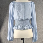 WAYF Babydoll Cropped Blouse Womens Small Smocked Peasant Balloon Sleeves. Zipper on the side. Please view all images for sizing. Message with any questions.