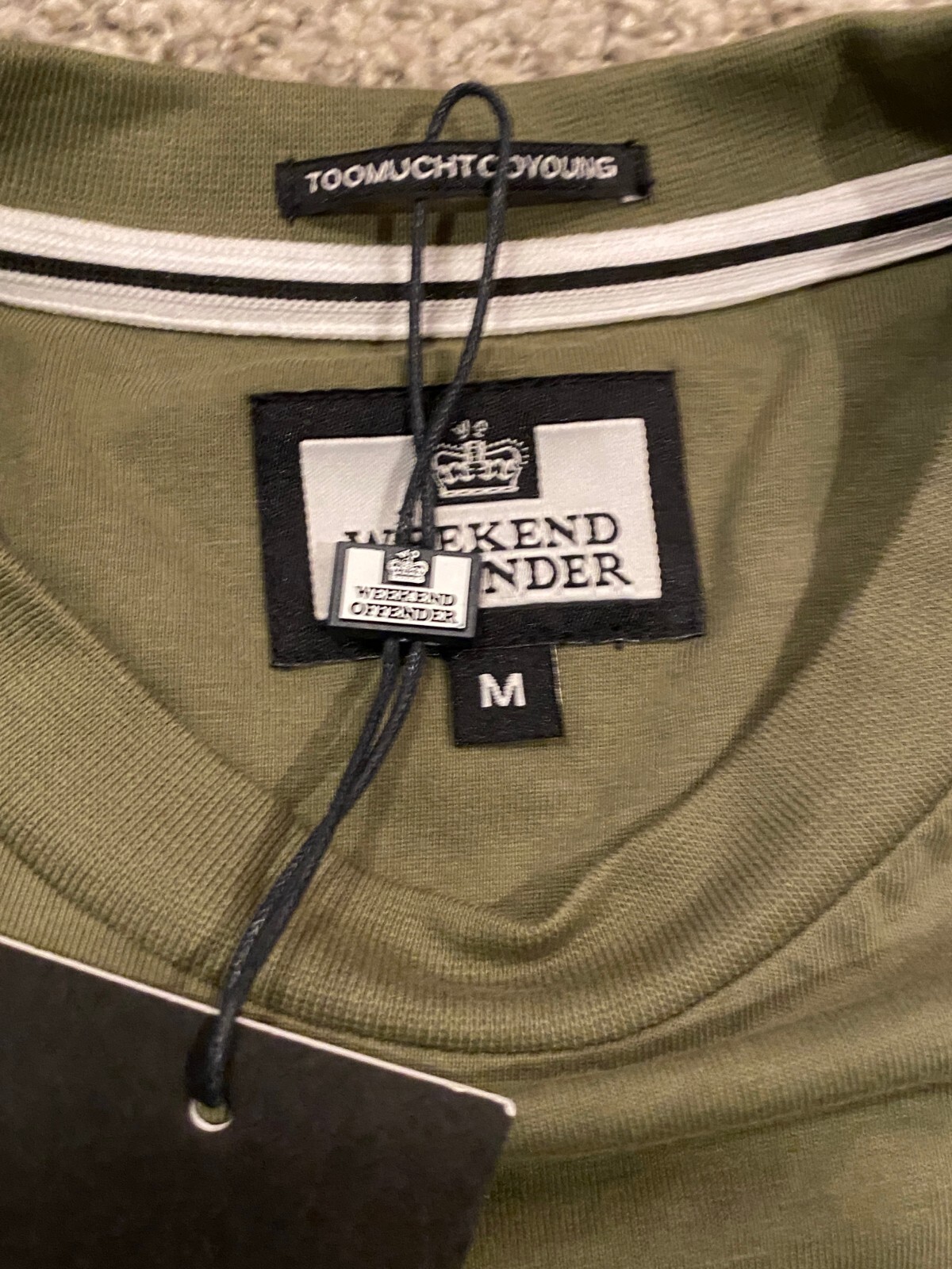 WEEKEND OFFENDER Men Olive Logo Long Sleeve T Shirt UK Medium New with Tags may have minor wear from storage. Please see photos for details. Please review carefully and ask questions before purchasing if unsure. Compare measurements to your favorite similar garment to get an idea of fit. All our items are shipped out fast and with care and thought for our customers!!