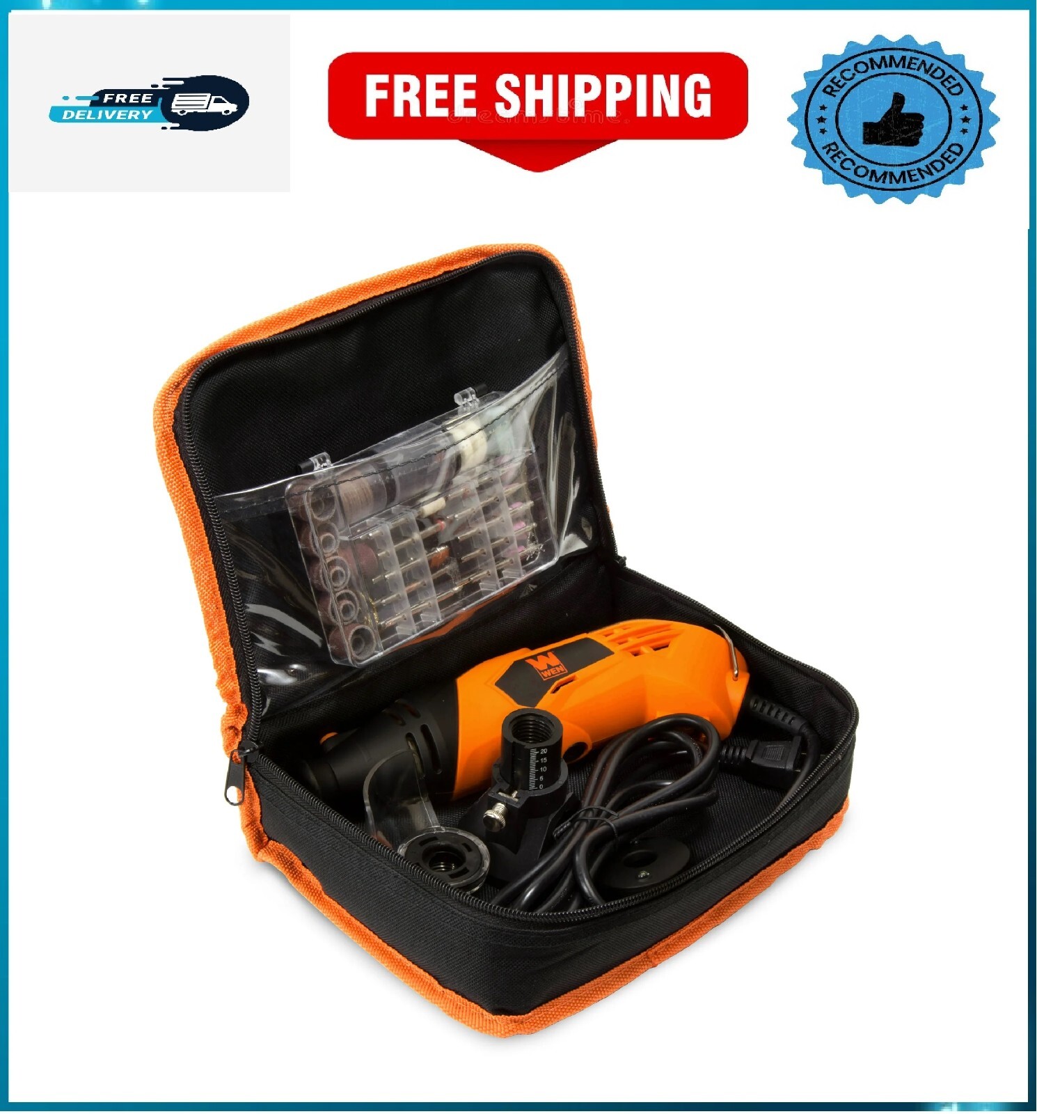 WEN Rotary Tool High-Powered Variable Speed 100+ Accessories Flex Shaft 1.4-Amp Remember when you had versatility in the palm of your hand. Remove rust from rusty stuff. Trim your dog’s toenails. Engrave beautiful images into your neighbour’s windows while they’re vacationing in Rome. With the WEN Rotary Tool, the possibilities are endless, limited only by your imagination and federal law. Equipped with over 100 accessories and three innovative collars, this package provides a wide variety of bits, discs, spindles, and more to meet the needs of any project. Our 1.4-amp motor makes easy work of even the toughest of tasks, providing maximum torque and performance during operation. Easily adjust the variable speed anywhere from 8,000 to 35,000 RPM with the simple turn of the speed dial. The lightweight build combined with the included flex shaft makes intricate designs easy to execute. Carve small and complex patterns into the glass, plastic, wood, steel, and more. Keep your rotary tool steady and flush against your workpiece. Or, swap on the LED light to improve visibility in dimly lit areas. The three different collet sizes (1/8-inch, 3/32-inch, and 1/16-inch) maximize compatibility with almost every bit on the market. Your WEN Variable Speed Rotary Tool also includes a handy carrying case for simple storage and transportation between jobs. And, because it's a WEN product, a robust inventory of replacement parts, and a friendly customer help line, all to make sure you remember WEN. Features three innovative collars: a drilling/routing guide, an LED light attachment, and a rotatable spark and debris deflection shield Attach the 3-foot flex shaft for jobs requiring intricate and complex detail work Multi-compartment carrying case allows for easy organization of your tool, collars, flex shaft, and 100+ accessories Packed with accessories, including three different collet sizes (1/8”, 3/32”, 1/16”), diamond-coated bits, grinding bits, drill bits, felt polishing wheels, sanding bands, cut-off wheels, sanding discs, and more