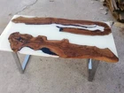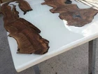 WHITE EPOXY RESIN RIVER DINING TABLE TOP, ACACIA WOODEN HANDMADE DECORS INTERIOR