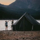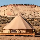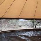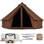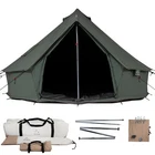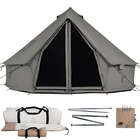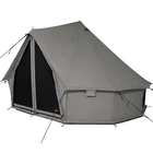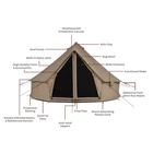 BREATHABLE FABRIC: 100% cotton 8.5 oz. Army Duck Canvas in beige color, Waterproof & UV Resistant, also available with Fire Retardant Finish. COMPLETE PACKAGE : includes High Quality Sewn-in PE groundsheet, 5” wide Stove Jack opening, Standard Mesh on Door and three Windows, 4 Strategic Vents for extra ventilation, Heavy duty trouble-free top grade zippers for maximum functionality, Galvanized Steel Entrance Pole and Center Pole, Tool Kit that includes Pegs, Pins, Rain Cap and Rubber Mallet- ALL packed in waterproof tent bag 4 FOUR SEASON TENT: All of our bell tents are waterproof as we have used weightless WR (Water) treatment that maintains the natural breathability of 100% cotton. It has a 5” stove jack, made from fire retardant material with a 43x43 cm flap so you can safely cook inside the tent or use it to stay warm on a cold night and an electric cable outlet to keep your phone or laptop charged. Ideal for camping and glamping. EXTREMELY SPACIOUS: The yurt style tent has a spacious design with standard wall height of 2'7" which is higher than the standard wall of a bell tent that makes the tent extremely comfortable. You can easily stand inside the tent and feel very relaxed utilizing maximum space. The space allows 4 person tent (10'), 6 person tent (13'), 10 person tent (16'5"). HIGH QUALITY FEATURES: The bell tent has 2 layered windows and 2 layered door; canvas cover that could be rolled up and additional mesh to keep the critters out yet allowing for the cool breeze to come in for a calm long night sleep. The windows and door come with heavy duty trouble-free top grade zippers that you can rely on. It also includes high quality sewn-in PE groundsheet for additional protection and to keep rain water out. All the seams are double stitched, corners are reinforced